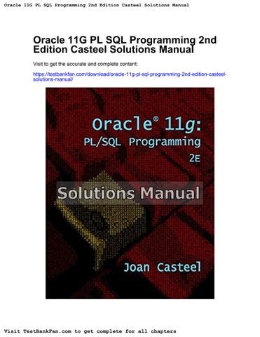Read ORACLE 11G SQL JOAN CASTEEL SOLUTIONS MANUAL Ebook Doc By Click Button. ORACLE 11G SQL JOAN CASTEEL SOLUTIONS MANUAL Ebook it’s easy to recommend a new book category such as Novel, journal, comic, magazin, ect. You see it and you just know that the designer is also an author and understands the challenges involved with having a good book. You can easy klick for detailing book and you can read it online, even you can download it