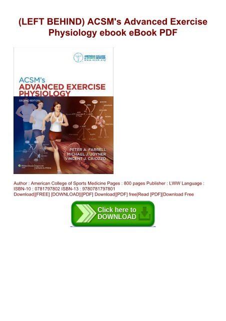 Download ACSMs Advanced Exercise Physiology Ebook Doc By Click Button. ACSMs Advanced Exercise Physiology Ebook it’s easy to recommend a new book category such as Novel, journal, comic, magazin, ect. You see it and you just know that the designer is also an author and understands the challenges involved with having a good book. You can easy klick for detailing book and you can read it online, even you can download it